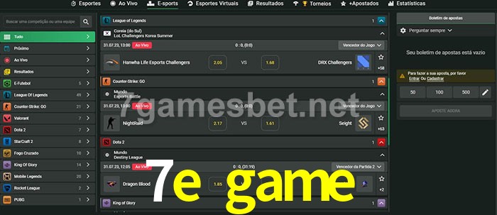 O 7e game oferece uma grande seleção de opções de apostas em e-sports com probabilidades competitivas